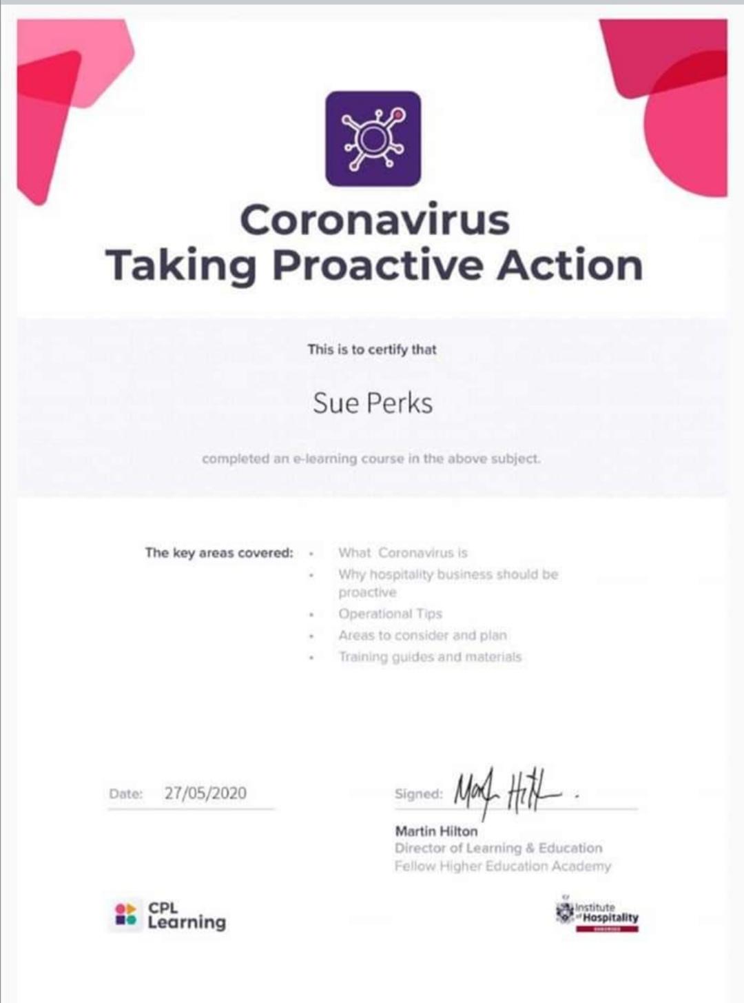 Being 5 Star Gold our cleaning standards are already very high. We have put in place extra cleaning steps to minimise the risk for our guests and us contracting the virus and ensuring the accommodation is safe. We will be following England Health and Government guide lines. We are very pleased to have received AA accreditation for Covid-19 confident 2021 & 2022. We have also completed the Hospitality Coronavirus course online and be involved in many hospitality web seminars for advise .