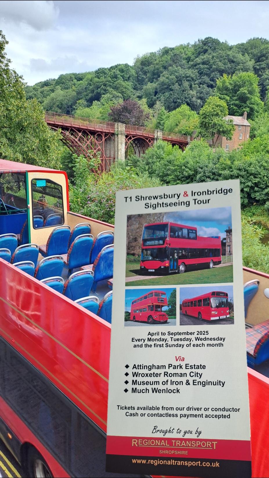 Catch the T1 Shrewsbury & Ironbridge Sightseeing Tour and discover Shropshire by Bus! Ironbridge to Shrewsbury- Hop on hop off.