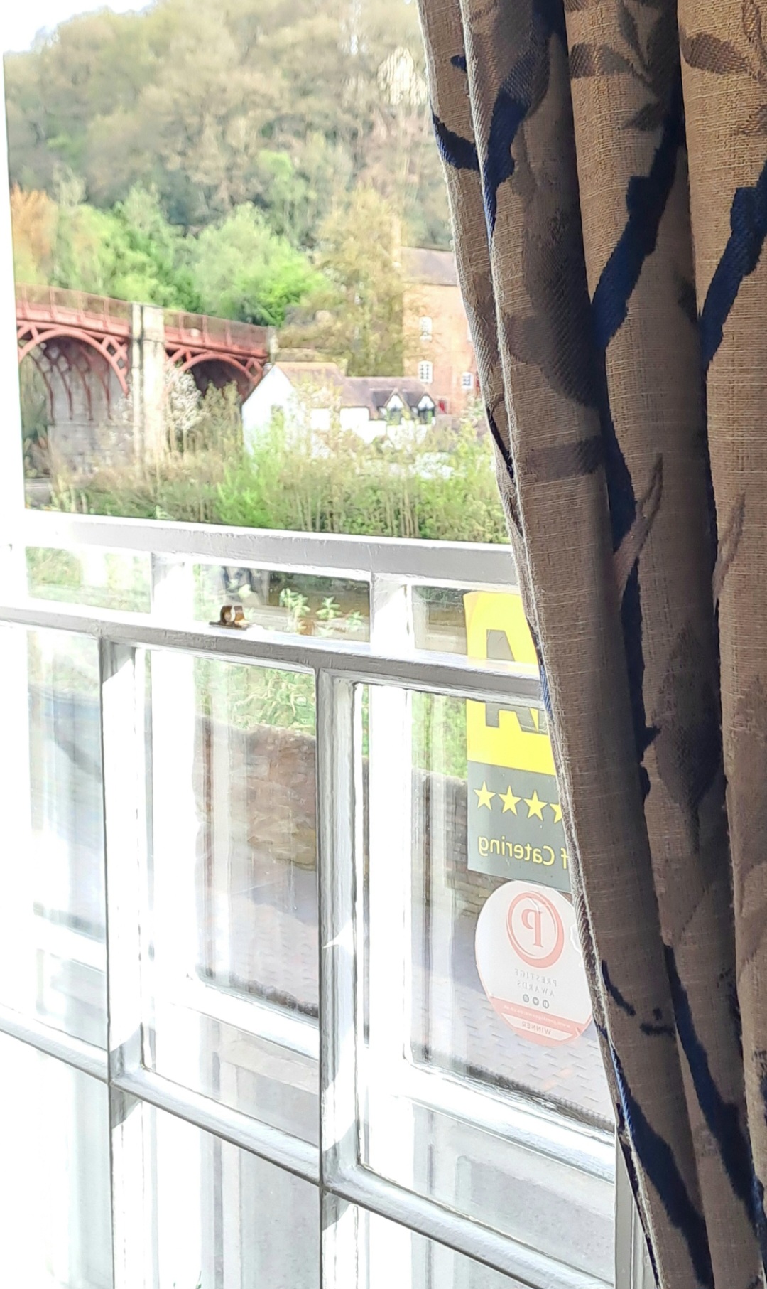 Lounge -Take in stunning views of the Iron Bridge from the large sash window in this beautifully furnished space. Relax on the cosy sofa or armchair with a glass of wine and a good book. Enjoy free Wi-Fi, a Smart TV with Netflix connection, local maps, walking guides, and a games cupboard to keep the whole family entertained.